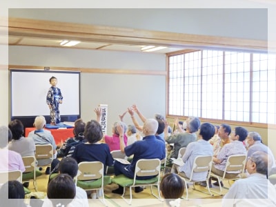 大空の会総会および春のレクリエーションを6月28日(土)乃木公民館で行いました。総会には15名の参加があり、事業報告や決算報告等みなさんの承認を得て無事終了しました。 その後春のレクリエーションに移りました。今回は初の試みとしてクリニック主催イベントと同時開催としました。会員以外にもたくさんの方がいらしてくださいました。最初に院長からミニ健康講座『腸内細菌について』のお話をしていただきました。みなさんメモをとりながら熱心に聞いおられました。次に松江算数塾活塾亭の8人のみなさんにこども落語『いきいき寄席』をご披露いただきました。ご参加いただいたみなさんも元気いっぱいな落語の世界に引き込まれておられるご様子でした。 今後も学びあり楽しみありの企画をしていきたいと思っています。