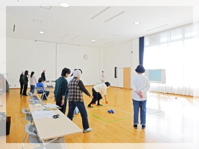 大空の会秋のレクリエーションを11月16日(日)に乃木公民館で行いました。 17名(会員13名、会員外4名)の参加があり、今回はパラリンピック競技でもあるボッチャに挑戦しました。未経験の方が多い中、会長の松本さんにルールを教わりながらゲームを進めていきました。2~3名で1チームとし全部で6チーム、それを3チームずつの2グループ(Aグループ、Bグループ)に分かれてリーグ戦をしました。 Aグループ(青、赤、黄)、Bグループ(白、緑、桃)でした。リーグ戦の結果により、各グループの同順位どうしで戦い順位を決定しました。ナイスショットもあれば思ったところになかなかボールがいかず悔しがったりと1投1投に一喜一憂でした。ほぼ勝ち確定と思われていても最後の1投で涙をのんだチームをありました。優勝は黄チーム! バッチリのチームプレーでした。 昼食後の座談会では、今年は豊作といわれている“天敵柿”⁉ が話題に上りました。 もったいない! でも食べたら血糖値上がるよね⤵ 日々模索されている様子をお話してくださいました。 半日ではありましたが、心も体もほっこり温まる時間を過ごすことができました。